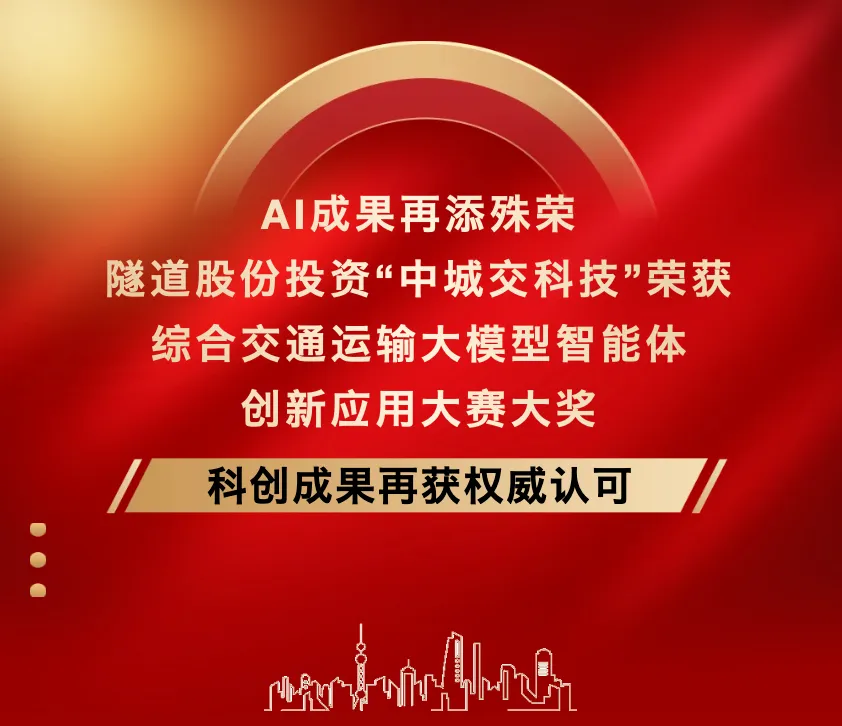 近日,在由国家交通运输部与国家邮政局指导、主办的首届综合交通运输大模型智能体创新应用大赛全国总决赛上,由隧道股份科创投资的中城交科技打造的两款AI智能体产品,分别荣获大赛一等奖、二等奖佳绩,彰显了中城交科技在AI+交通领域的领先实力。