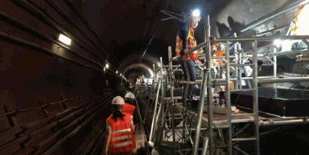 去年7月,隧道人为建成已有45年的香港铁路观塘线实施更新修复特别行动,利用激光扫描、高清线阵相机等对港铁隧道进行毫米级的数字化勘探,并打造了停运抢修平台,为港铁隧道的顺利更新奠定了数智基石。在28小时特别行动中,隧道股份深入香港地下,为港铁隧道开展“修复手术”,使其以更健康、安全的结构状态,服务香港市民日常出行,展现应急维保领域的“上海力量”。