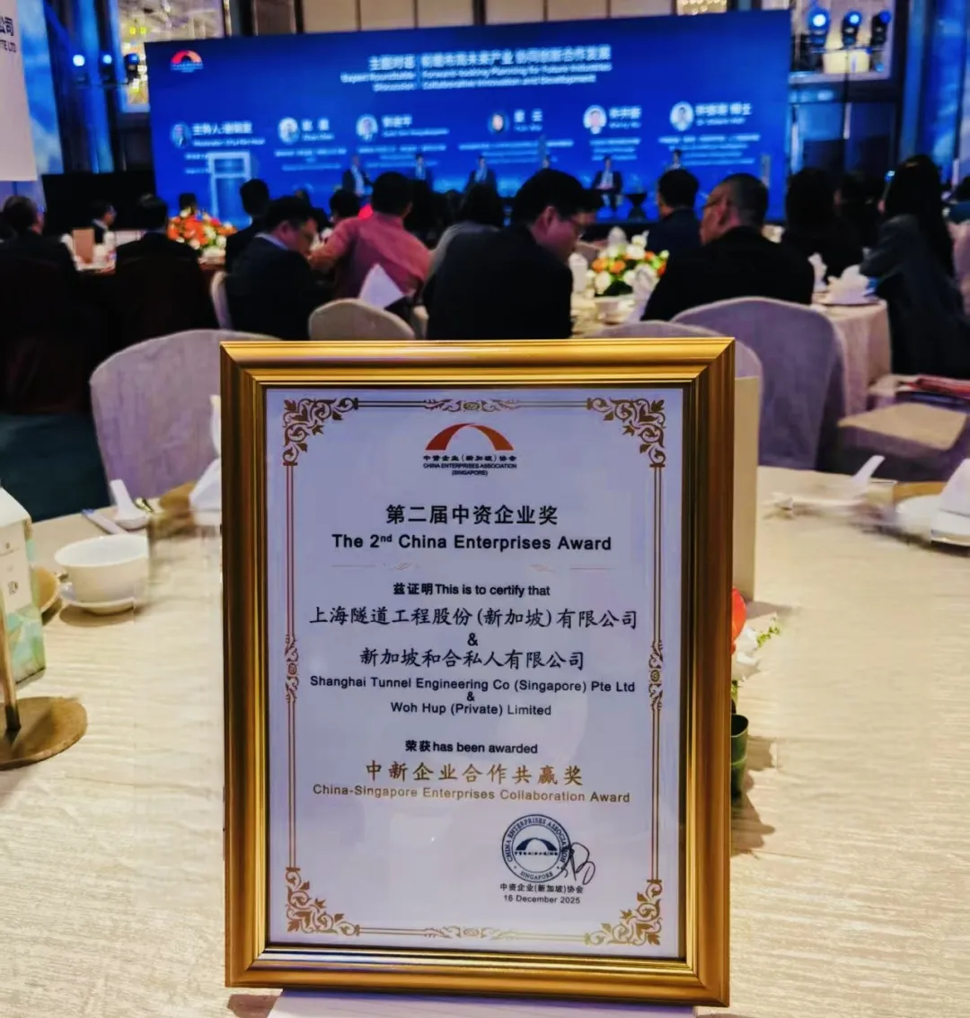隧道股份城建国际在新加坡携手合作伙伴荣获中资企业协会“中资企业奖-中新企业合作共赢奖”